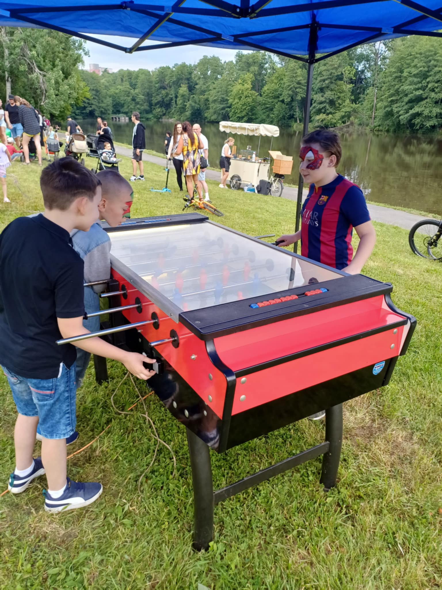 - Tento fotbálek zapůjčíme na Vaši akci. Přivezeme, po akci odvezeme. Krom fotbálku dodáváme i párty stan (kvůli sluníčku... :-) ) a DOZOR k atrakce, který po celou dobu bude na vaše dozorovat, tak ať je vše v pořádku či se nic neponičí :-).
